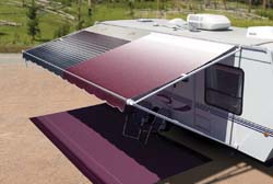 Show your racing spirit at the races. Impress your friends with Carefree's Checkered Flag Canopy. Replace your existing awning fabric with a universal fit vinyl checkered fabric for a very low price. These fabrics are two-piece, in that the 'valance' is separate from the main canopy in order to fit the various roller tube configurations. The vinyl awnings consist of a heavy-duty fabric 'welded' to a heavier 'Weatherguard' vinyl which protects the fabric when rolled up. These fabrics do not fit Zip Dee awnings, nor may they be used with existing metal weatherguards. If you need a complete new awning, we can handle that too. Carefree Awnings have exclusive features not found on competitors' brands.