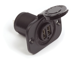 Dual USB 2.0 chargers with sealed cap has 2.1A DC of output for quick charging of mobile devices including Apple? products.