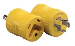 Use to connect standard 30A RV cordset to generator equipped with 20A locking receptacle. One-piece unbreakable housing. Weather resistant construction. Female 30A/125V. Male 20A/125V locking.