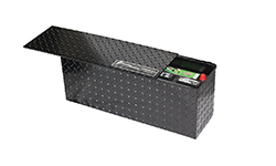 PowerArmor DH is a high quality locking diamond plate aluminum box developed to secure batteries to prevent increasingly common "cut and run" theft and resulting expensive wiring damage. The design utilizes a unique lockable slide top (lock included) for quick easy access. It can also be used for safe lockable storage when not used for batteries. By using it with batteries, you will have extra secure battery power for your RV, truck camper, truck, van etc. There is an access hole in the back for electrical wires to pass through the side wall of the box to easily wire into the electrical circuit and incorporates a special design for proper battery ventilation. High-impact powder-coat black. 24" x 7-5/8" x 14-1/8". Holds up to 2 Group 24/27. Kit includes box, lock, hold-down straps, mounting hardware. PowerArmor comes with Torklift International's legendary lifetime warranty. Proudly made in the USA.