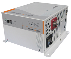 Available in two models (2,000W and 3,000W), the Freedom SW Sine Wave Inverter/Charger provides utility-grade sine wave output to meet power needs of all types of recreational vehicle applications. SW2000 offers industry standard features at a very competitive price whereas the SW3000 is packed with features and offers premium performance. Power factor corrected, temperature compensated, multi-stage charging. Built-in transfer switch automatically transfers between inverter power and incoming AC utility power. Wide operating temperature range 2,000W model: Full inverter and charger output up to 104 degrees (4C. 3,000W model: dual input/dual output interface.