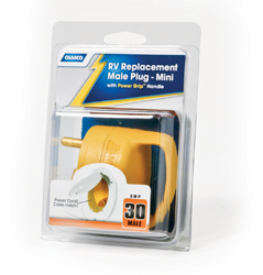 Replacement plug fits completely inside RV?s cord cable hatch, so door can be closed during travel. Sturdy handle makes it easy to remove plug from power outlet._x000D_