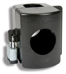 This handy Power Cord Lock gives an added measure of security for your outside surge protectors, Autoformers, extension cords, and other devices you may be connected to. Quick to assemble and use, just put the two halves together around the power connecter and attach your padlock. (padlock not included)