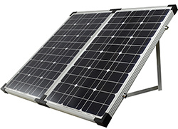 Portable Solar Power! The Go Power! portable solar kit sets up in minutes with no installation or mounting required. This kit is designed to be left on the ground while parked, and has adjustable tilting legs for the optimum tilt angle. The solar controller is built in and includes a 16 foot cable to give you range to track the sun. Complete with a storage bag for when not in use. The model produces 120 Watts / 6.6 Amps per hour of peak sunlight.