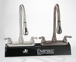 8" non-metallic kitchen with pull-sown spout and vegetable sprayer with teapot lever handles. Lead free.