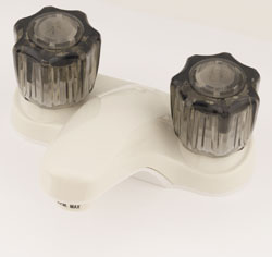4" non-metallic lavatory with smoked crystal handles. Lead free.