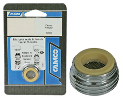 Brass adapter fits male and female faucet threads. Adapts to a standard garden hose. 1/card.