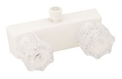 4" non-metallic shower valve with crystal handles and vacuum breaker.