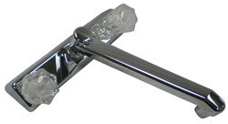 8" chrome kitchen faucet with clear handles. Five year warranty. USA made. 1/box.