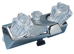 These beautiful Utopia Tub/Shower Diverters come in chrome or white and mount on 4" centers. They have anti-siphon hook-up for personal showers. The chrome model has clear plastic handles and the white has smoke handles.