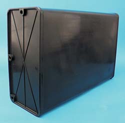 The only solvent-weldable water tank so you can add fittings anywhere. Lightweight, completely algae-free black ABS plastic. Tasteless, odorless, and non-toxic. For low water pressure applications. Meets strict FDA. specifications. Includes 3/8" threaded fitting inserts; 3 on each end. 1 year warranty. 6 gal., 8" x 16" x 12". 1 per pack.