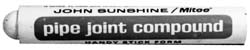 Rub onto pipe threads to seal joints on metal pipe fittings.