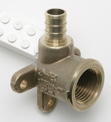 Brass 1/2" insert x 1/2" FPT drop ear elbow. Priced each.