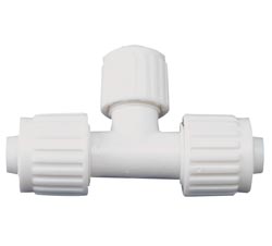 Tee with 3 Flair-It? connections. Measurement are Run x Run x Branch. Outlet sizes to fit 7 combinations of 1/2", 3/8" and 3/4" diameter pipes. Priced each. *For use with PEX only.