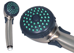 Single function spray head has a water saving trickle valve on the hand set. Kit includes matching finish hose guide ring, 3-position shower bracket, mounting hardware and 60" hose.