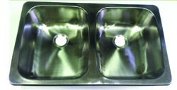 Double-bowl stainless steel sink with 3-1/2" drain. Requires 26-1/2" x 15-1/2" cut out.
