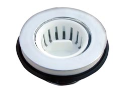 Complete sink basket strainer fits 2" drain. Chrome strainer with white one-thread basket.