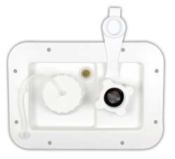 Easily installed water fill center comes with both city and gravity fills and is built for convenience. No doors or locks and mounts in a low profile setting. Includes replaceable plastic city water fill check valve. Built with a 1/2" screened air vent for ease of use. 1/pack.