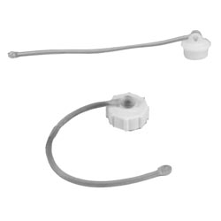 Plug with strap is 3/4" MPT. Cap with strap is 3/4 FPT. Priced each.