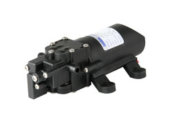This 12V Electric water pump is designed for the smaller, single fixture RV or marine application. This compact automatic demand fresh water pump offers durability and dependability making it ideal for low volume, intermittent duty applications. The 105 pump self-primes up to 2.5 vertical feet while delivering over 1.0 GPM. A 12 volt low power consumption motor, equipped with thermal protection and long life pressure switch rated to 30 PSI, provides high pump performance and reliability.
