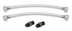 Connects to the inlet and outlet of your water pump to silence unwanted pump noise while reducing water hammering. Kit includes two 36" soft tube risers and two 1/2" male connectors for added connection for a variety of system.