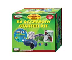 Valterra now offers Standard and Deluxe starter kits with a 54 minute training DVD on all basic RV systems. An inexperensive way to train first time RV buyers! Created by RV Education 101, the kits also includes the basics: drain hose w/value adapter, toilet tissue, toilet treatment, RV dump gloves, electrical adapter, bubble level, and water hose and the Deluxe kit has a water regulator too.