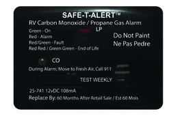 Direct drop in replacement for Safe-T-Alert Mini LP Gas detectors model 20-441. Upgrades old LP gas detectors to Dual LP gas and carbon monoxide alarm. Meets requirements set by RVIA for CO alarms and propane detectors. Test/reset button tests both alarm functions with one touch. 12 Volt; hard-wired. UL listed for recreational vehicles and unconditioned areas for both carbon monoxide and propane/natural gas. One year limited warranty. 3.5"W x 2.5"H x 1.25"D.