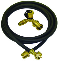 Flow-Longer Plus Propane Adapter Kit allows the connection of portable LP appliances without the need for an extra LP cylinder or disposable canisters. Kit includes a brass elbow tee and 12' hose.