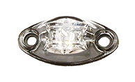 Weatherproof LED Marker Light - 2 diode. Dragen's eye design. Self grounding, surface mount. 2-5/8"L x 1-1/4"W x 3/4"D. Color Clear, illuminates Red.