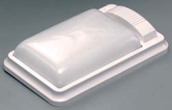 Low profile (9/16") ABS frame enables an enlarged lens to distribute light over a large interior area. Single light is 6-5/8"L x 4"W x 1-9/16"H. One per pack.