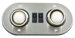 Powerful, low profile directional reading lights. Perfect above the sofa or mount the double above your headboard in the bedroom. Sleek satin nickel. Includes #1139 bulb(s). Two year warranty.