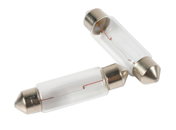 Replacement #214-2 festoon cap style bulb with cone shaped ends. 13.5V, 7.02W.