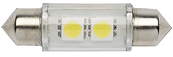 2 diode, 25 lumen, V8.5 festoon for overhead lighting and appliance replacement. Great for reducing cooling loads on refrigerators and more. 5500 Kelvin, daylight white, 0.07 amp draw.