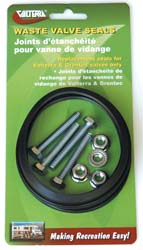 Replacement part for Valterra style valve seals. Kit includes 2 seals, nuts, and bolts. 1 kit per card.