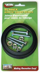 Replacement part for Bladex valve seals. Kit includes 2 seals, nuts, and bolts. 1 kit per card.