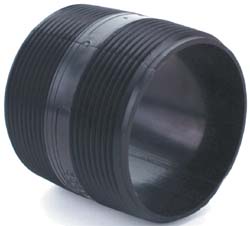 Black plastic nipples weigh a fraction of what steel nipples weigh. Size is inside diameter. Threaded on both ends. Priced each.