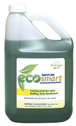 Eco-Smart quickly breaks down and liquefies waste and tissue to prevent messy clogs. Superior odor control. Detergent additive keeps tanks clean. Non-staining green dye washes clean with soap and water.