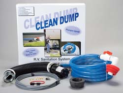 A CLEAN DUMP Waste Macerator system lets you empty your tanks in less than 5 minutes including pulling out the hose and putting it back. Take the chore out of dumping your tank - no more waiting for flex hoses to drain clean! The Macerator pump grinds and fluidizes waste allowing it to flow quickly through the discharge hose. So powerful, it can pump up to 100' and uphill too! It pressurizes the 1" diameter discharge hose, so it's cleaned by the gray water which is discharged last. Easily and securely connects to most RV dump receptacles preventing accidental spillage. The discharge hose is 300 PSI has a 30 year UV rating and guaranteed to 42 degrees below zero for cold weather integrity.