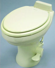 Enjoy all the best features of a household toilet in your RV with a Dometic 320 series toilet. The elongated, deep ceramic bowl and enameled wood seat offer comfort that far surpasses most smaller RV toilets. The pressurized full-rim flush delivers a bowl-clearing rinse every time. Ergonomic one-direction foot pedal action results in easy, hands-free flushing for added sanitary benefits. The sparkling vitreous ceramic bowl keeps its original beauty for years.