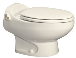 Thetford Aria Deluxe II RV ToiletThe permanent RV toilet, Aria Deluxe II, is a new classic in sculptured China! The aria deluxe II is a permanent RV toilet that has a One-touch Walk-Away electric flush! Fingertip convenience -- just press to flush and walk away! Pulsating flush provides superior wash down and quiet performance. Uses about half as much water per flush as other brands. Elongated full residential-size seat and bowl. High profile seat height is 17-1/2". Low profile seat height is 13-9/16". You cannot get a more homelike RV toilet! It is taller for a built-in higher comfort level. Residential seat and lid allow owner customization. Requires a 12-volt hookup. You cannot get a more homelike RV toilet! It is taller for a built-in higher comfort level. Residential seat and lid allow owner customization. Requires a 12-volt hookup.NOTE: Due to Fedex and UPS hazmat regulations,expedited shipping is not available for toilets. Standard groundtransportation will be used for all toilets.High Profile DimensionsLength - 24 7/16 in. (64.1 cm) Width - 14 3/4 in. (32.4 cm) Overall Height - 20 9/16 in. (52.2 cm) Seat Height - 17-1/2"Low Profile DimensionsLength - 24 7/16 in. (64.1 cm) Width - 14 3/4 in. (32.4 cm) Overall Height - 16 3/4 in. (42.5 cm) Seat Height - 13-9/16"