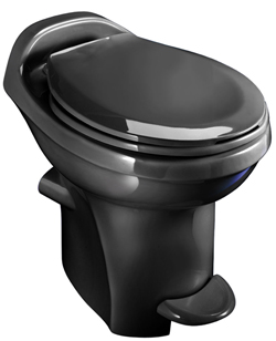 A truly beautiful china-bowl replacement for almost any RV toilet on the road. Powerful full bowl flush coverage. Optional water saver. High profile seat height is 17-1/8", low is 13-1/4".