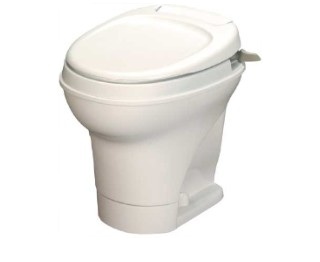 Thetford Aqua Magic V RV ToiletThe Aqua Magic V by Thetford is the most popular RV toilet in North America. The Aqua Magic is an economical choice and a solid, day-after-day performer. This RV toilet is available with dual-hand or convenient dual-foot pedal operations. This model is also available in high (17-2/5") or low (12-9/10")profiles to fit your specific space requirements.This RV toilet offers a taller, more comfortable seat and single-control fill and flush for full-bowl wash-down every time you activate the hand lever or foot pedal. Its contemporary design is lightweight, easy to install and service. Textured lid sheds water and resists scuffs. Models with Water Saver include a powerful, convenient manual rinse for easy cleaning.NOTE: Due to Fedex and UPS hazmat regulations,expedited shipping is not available for toilets. Standard groundtransportation will be used for all toilets.