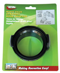 Straight hose adapters connect sewer hose to waste valve fitting.