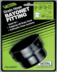 Use with bayonet fittings to extend drain hose or adapt hose end for capping. New Swivel design allows drain hose to lay flat, wire retaining ring safely holds wire end. 3" opening. Rotating fitting allows the drain to lay flat.