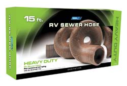 Contains 25% more vinyl than other heavy-duty sewer hoses for greater durability! Superior flexibility and crack resistance in all weather conditions! Three layers of 15 mil HTS? vinyl to minimize pinholes and other leaks caused by the rough scrapes and abrasions of everyday use. Tightly wound steel wire makes the inside smoother for cleaner rinse-through. Includes ready to use pre-attached bayonet fitting for fast RV connection. Brown. 1/box.