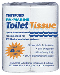 Soft and gentle 1-ply tissue is 100% biodegradable and flushes easily. 350 sheets per roll, 4 rolls/pack.