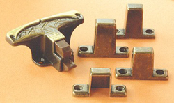 Includes 3/8", 1/2", 5/8" & 3/4" strikes to fit almost any door thickness. Antique bronze handle features an angel wing design. 1/clam shell.