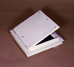 9" x 9" opaque roof vent with 7/8" plastic garnish. Priced each.