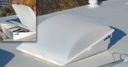 Get high-flow fresh air ventilation and light into your RV, rain or shine. This streamlined cover has 30% more open vent area than other brands. The swing-open design makes cleaning easy. It's made of rugged UV stabilized resin and installs easily by mounting to existing 14" x 14" roof vent. Instructions and necessary hardware included. Patented.