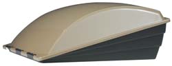 Offers 30% more open vent area than other brands. Works great with high power fans. Aerodynamic, low profile design has a hinged top that swings open for cleaning. Vents on three sides increase air flow inside your RV. Made of UV stabilized resins for years of rugged use. Install over existing 14" x 14" roof vents. 3 year warranty.